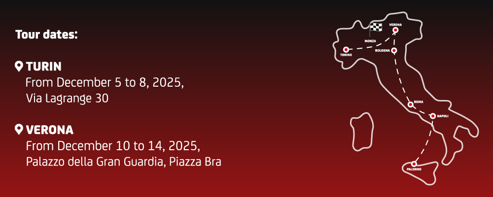 UniCredit is crossing our country with a tour that, starting December 5, 2025, will light up the squares of 7 Italian cities in red, bringing Italy’s most famous single-seater to all enthusiasts.