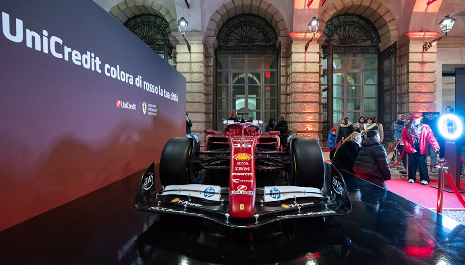 Last December, UniCredit kicked off a travelling event in Turin and Verona, setting the Ferrari SF‑24 single‑seater on a nationwide tour that welcomed thousands of visitors.